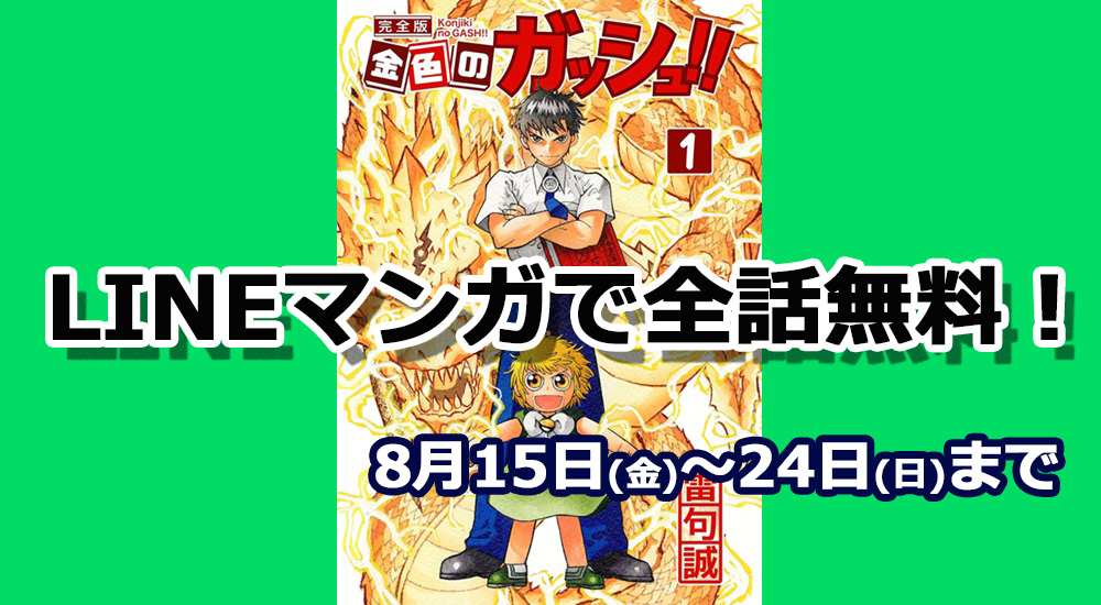 LINEマンガで「金色のガッシュ!! 完全版」が全話無料キャンペーンを開催!8月15日(金)~8月24日(日)23時59分までの10日間の期間限定ですのでお早めにどうぞ!
